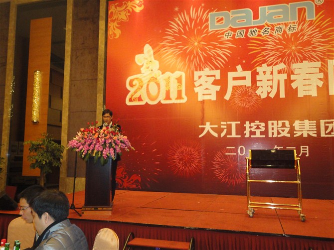 集團董事長陳耀哲致新春賀詞,陳董代表集團董事會和全體員工向歷來支持和關心大江的各界朋友、銷售分公司表示衷心的感謝!陳董指出:在過去的一年,大江控股集團碩果累累:非晶變壓器項目順利上馬,被評為溫州市工業(yè)面上科技項目;集團加強科技研發(fā)和設備投入,技術中心被認定為市級技術研發(fā)中心;集團生產(chǎn)規(guī)模逐步擴大,樂清經(jīng)濟開發(fā)區(qū)3萬平方米新廠房投入使用;在2010年9月,集團全盤收購世界500強企業(yè)法國泰樂瑪公司;陳董強調(diào):我們要搶抓機遇、深入市場、迎難而上,為爭一流品牌奠定堅實的基礎,發(fā)展是我們永恒的主題,集團上下要精誠團結、集思廣益、開拓進取、創(chuàng)新工作,為開創(chuàng)大江新局面而努力奮斗!
