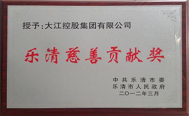 2012年3月27日上午9時,樂清市慈善大會在市政府會議中心隆重召開,市委書記潘孝政出席大會并做重要講話,大江電氣集團有限公司被樂清市慈善總會評為“樂清慈善貢獻獎”稱號。