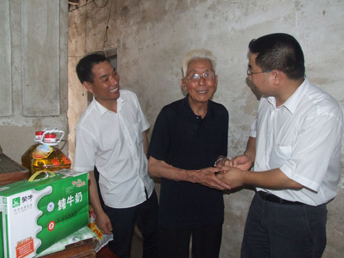 行政部主任王華兵一到徐巖熙的家,就親切地握住老人的手,關(guān)心地詢問他的身體健康狀況,詳細(xì)地了解徐巖熙老人的日常起居和生活情況,鼓勵他多活動,多參加體育鍛煉,保重好自己的身體。了解到徐老已是86歲高齡時,預(yù)備黨員、行政部副主任倪成華說:“每個黨員都有兩個生日,一個是自然生日,另一個是我們黨的生日,今天我們來看望老黨員就是要共同慶祝這一個特殊的生日,您已經(jīng)八十多歲了,1946年就參加了中國共產(chǎn)黨,為黨的事業(yè)做出了極大的貢獻(xiàn),黨齡比我們的年齡還長,一輩子對黨的忠誠信念不變,這種精神值得我們永遠(yuǎn)學(xué)習(xí)?!蓖瑫r,還帶去了大米、食用油、飲料等日常生活品。
