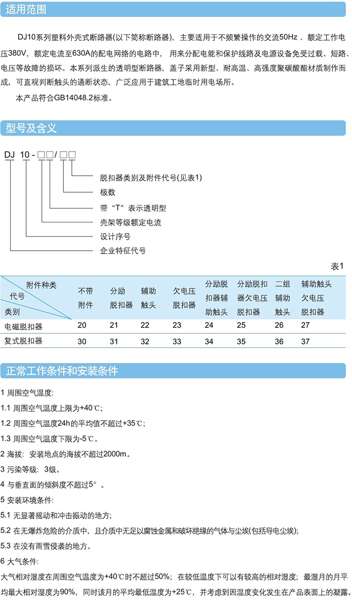 DJ10塑料外殼式斷路器